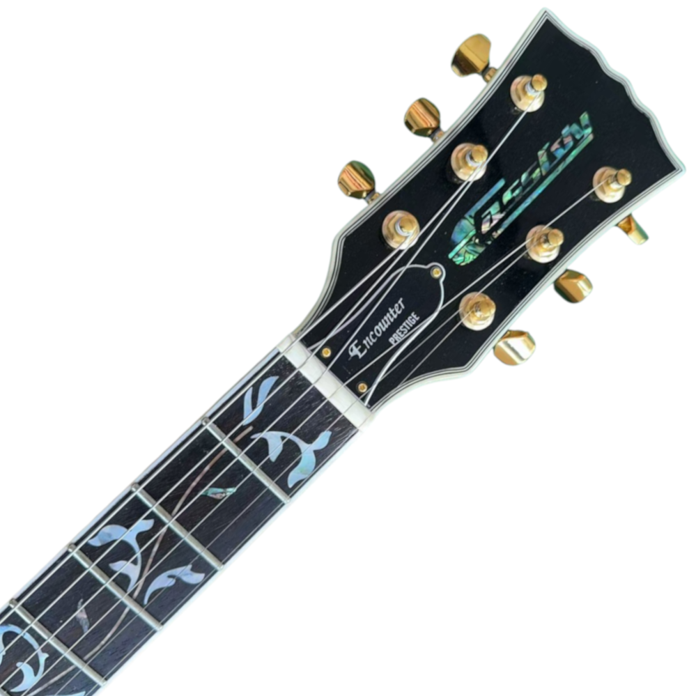 We’ve added quality Gold hardware and Pickups from our Europa Humbucker range which will take you from smooth Jazz through dirty Blues to singing Rock legato at the turn of the speed Dial Volume knobs. The Prestige range adds quality Jinho 18:1 Locking Tuners and Coil Taps to both Tone Controls.